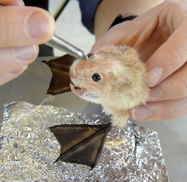 Prender la boca como se describe en Taxidermia de ratón y dejarlo solo por un par de días en un lugar cálido y seco. Esponjar las orejas periódicamente para evitar doblar durante el secado; puede ser útil humedecer para reposicionamiento.