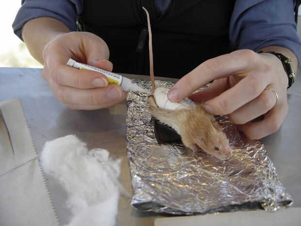 Cortar unos trozos de alambre fino, aloop la parte inferior 1cm en forma de J y apriete firmemente. Compruebe que este pedazo doblado del alambre deslizará a través de uno de los agujeros de hueso de la pierna de pato todo el camino hasta el pie. Se debe deslizarse fácilmente, pero tocar los lados del agujero.