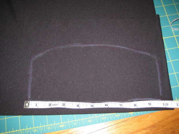 Medir su alfombrilla para determinar cuánto tiempo necesita para hacer el resto de muñeca. Mi cojín de ratón mide 8 pulgadas a través. Después de haber medido su cojín de ratón, luego doblar el material en cuatro capas para facilitar el corte. Asegúrese de agregar un adicional de dos pulgadas al medir sobre el material para permitir la costura al coser.