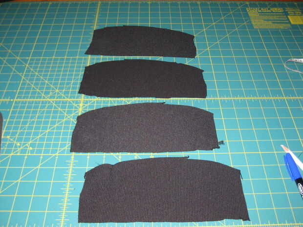 Puesto que ya han doblado el material en cuatro capas sólo tienes que cortar de una vez! Si se utiliza un material más grueso que es difícil de doblar varias veces entonces corta su patrón y lo traza tres veces y corta las piezas así. Sugiero usar una sierra circular o navaja para cortar las piezas de tela. Si utilizas tijeras ten cuidado porque las piezas pueden salir siendo de diferentes tamaños, que pueden hacer más difícil coser.