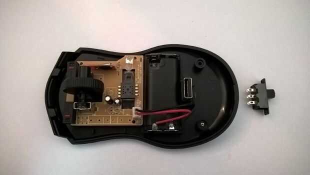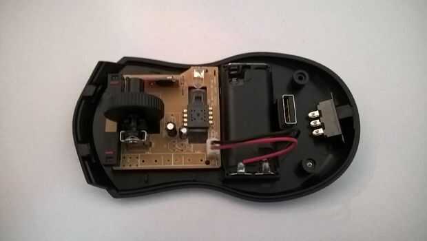 Cuando el ratón se abre, decidir dónde sería el mejor lugar para poner el interruptor. Mina tiene un montón de espacio en la parte trasera, así que ahí va a ir. Ratones más pequeños generalmente no tienen este lujo de espacio, así que usted podría poner el interruptor en el agujero que se utiliza para almacenar el receptor inalámbrico (si existe).