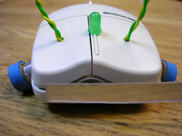 Mousebot es un bot sencillo que utiliza dos "ojos" a la luz del sentido y luego se vuelve hacia la luz. Un único gran "barba" se monta en el frente del ratón para detectar colisiones. Un choque con una pared hará que el ratón para invertir y luego sacar en otra dirección. Este proyecto es bastante barato, si tienes un ratón para utilizar las otras partes se puede obtener por menos de diez dólares.