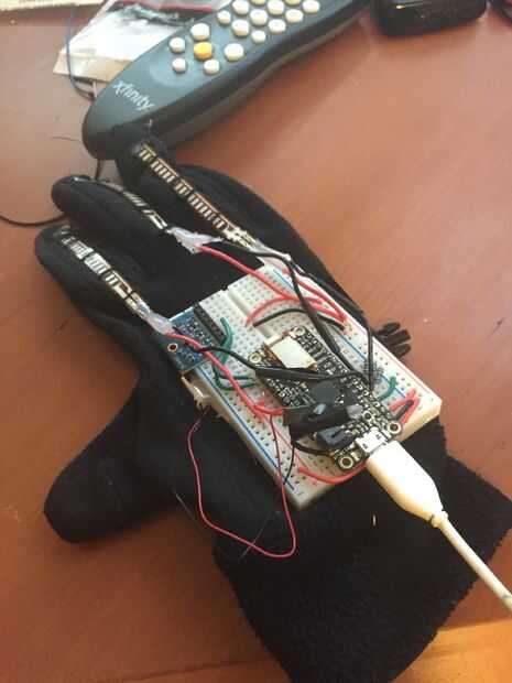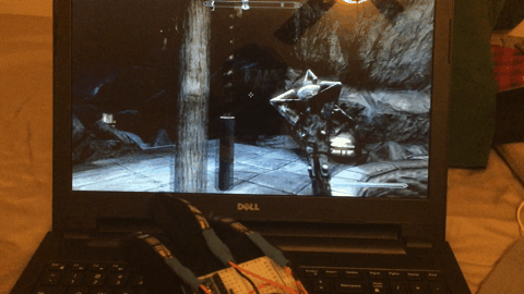 Este es un proyecto que he estado trabajando durante un par de meses. Utiliza un sensor de giroscopio para detectar cómo se mueve el guante y mueva el cursor por consiguiente y flex de sensores para detectar si los dedos están doblados y activan los botones izquierdo y derecho. Al hacer clic, el guante Zumba un motor para simular la realimentación, como si fuese un ratón real. Si tu dedo anular no está doblado, el cursor no se moverá, esta función le permite ajustar fácilmente la posición de la mano. El microcontrolador que utiliza para este proyecto fue la pluma de Bluefruit Adafruit (tenía la intención de utilizar el Bluetooth y hacer que funcione sin cables), pero baratija de Adafruit Pro es una alternativa más barata. En el GIF, estoy jugando Skyrim con el guante, el sensor de dedo anularme permite fácilmente pan alrededor y el guante hace que el juego se sienta mucho más interactivo!