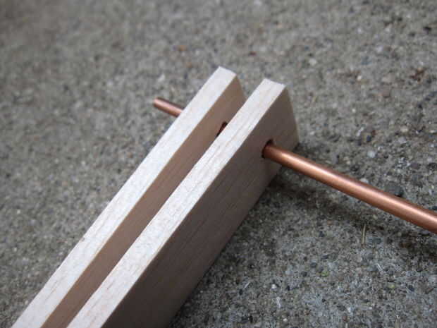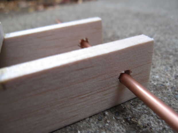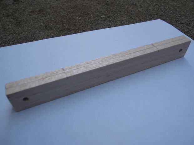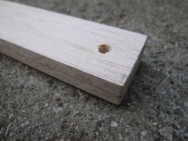 El cuerpo del coche se compone de tres partes: la ratonera y dos pedazos de madera de balsa.  Su primera oferta de negocio es quitar algunas partes de la trampa.  Para ello, que sujeta las piezas con alicates y apretamientos, estiramientos, los pedazos hacia fuera.  Usted tendrá que mantener el brazo de palanca (indicado en las notas del cuadro).  A continuación, cortar la madera de balsa en dos longitudes de 8".  Mi madera de balsa fue 1" de ancho y 1/4" densamente, pero probablemente podría utilizar un tamaño diferente.  A continuación, marque dos puntos en una sola pieza de madera de balsa.  Cada punto debe ser 1/2" de la parte inferior y lado de la madera, en ambos extremos de la madera.  Sostiene juntas ambas piezas de madera de balsa, perforé donde deberían estar los orificios.  El tubo de cobre (que más tarde se convierten en el eje) debe ajustarse libremente en el agujero.  A continuación, hacer marcas de dos pulgadas de cada extremo de la madera de balsa.  Esto es donde se pega su ratonera.  Por último, utilice pegamento de carpintero para pegar la trampa a los dos trozos de madera de balsa.