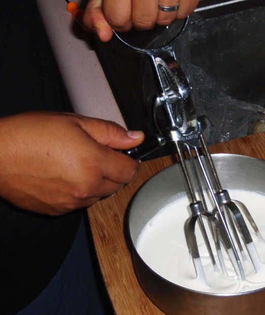 necesita-60 gramos de cacao en polvo-8 cucharadas de azúcar-60 ml de agua -2 huevos -2 tazas - un batidorPaso 1: Haga la mezcla de Chocolate Mezclar el agua y el chocolate en polvo hasta que la mezcla es un líquido de chocolate suave. También puede f