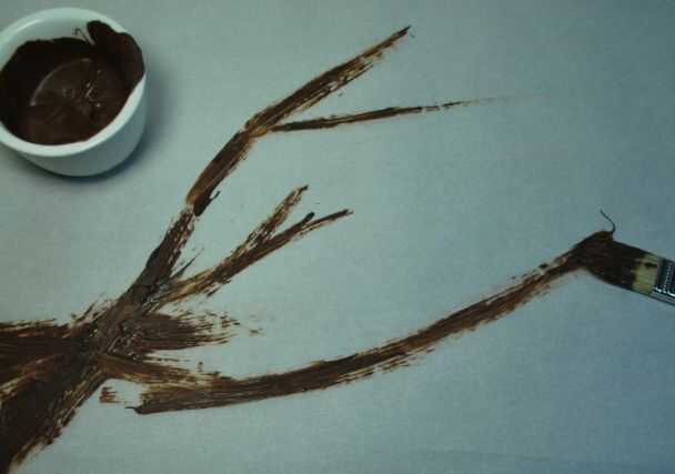 Esta presentación inesperada es súper fácil ya que las ramas de los árboles son muy fáciles de replicar y cepillado el chocolate en el papel crea una textura perruna.