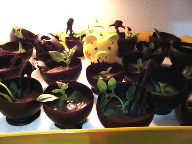 La combinación de chocolate y albahaca hace un maravilloso manjar.