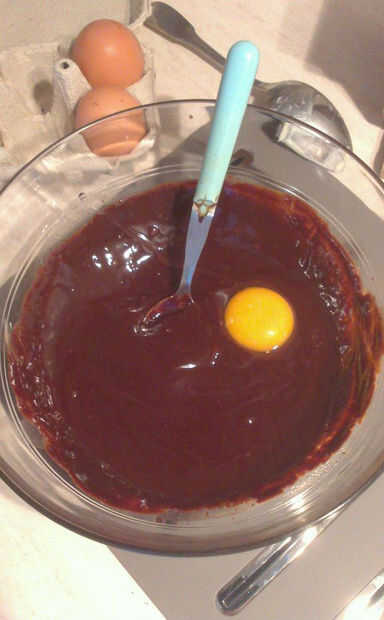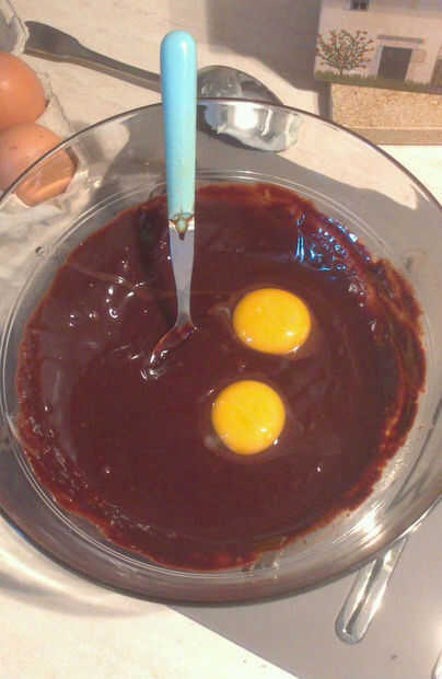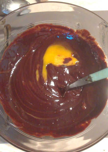 Mezclar nuevamente el chocolate y las yemas de la preparación, para obtener un resultado liso.