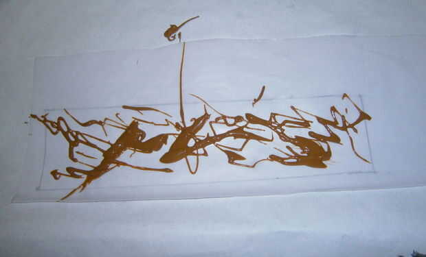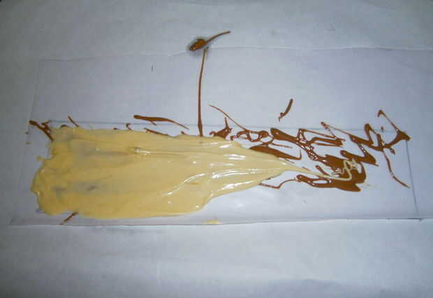 Ahora con el chocolate negro templado hacer rayas al azar en el papel de pergamino.