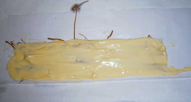 Dejar endurecer durante 2 minutos. Ahora Vierta el chocolate blanco templado sobre él.