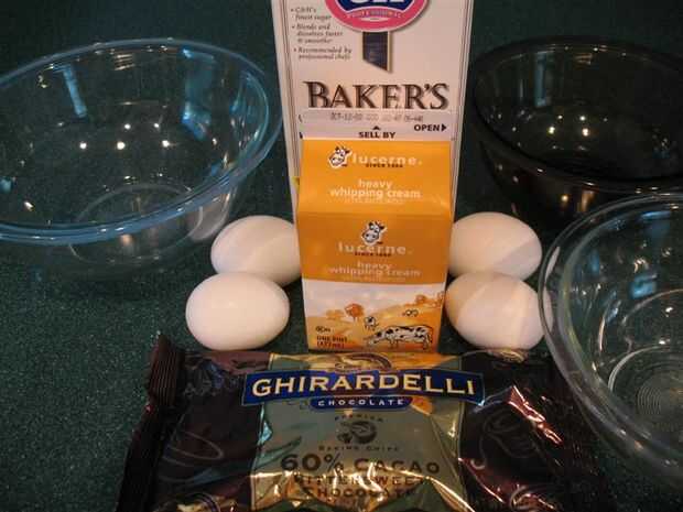 Usted también necesitará cuatro tazones de fuente medianas o grandes y un utensilio de la mezcla (preferiblemente flexible para sacar con pala encima de la posible bondad más chocolate).