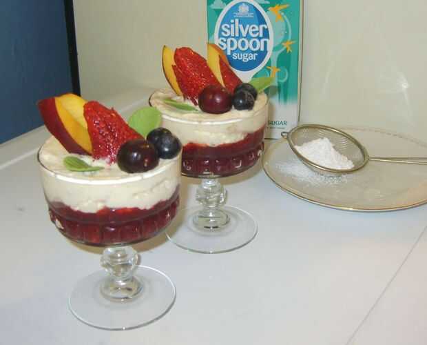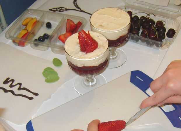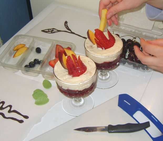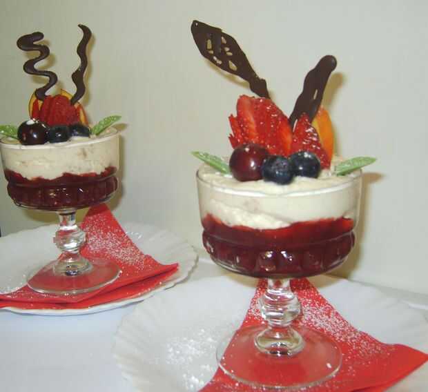 Mousse de plátano con mermelada de fresa y bayas de verano (4 / 4 paso)