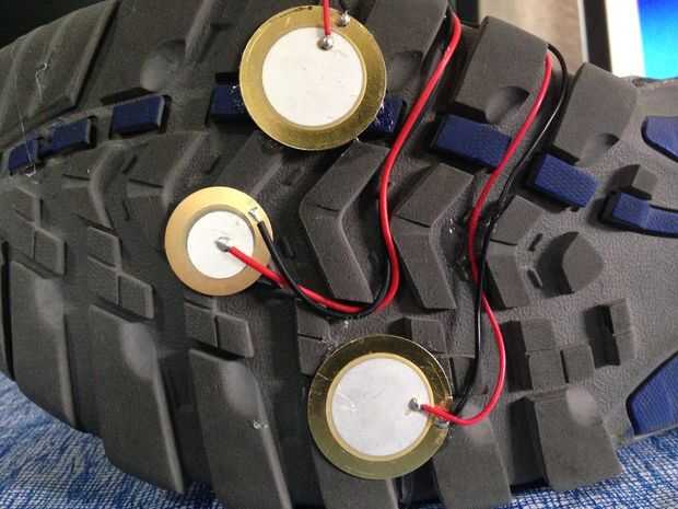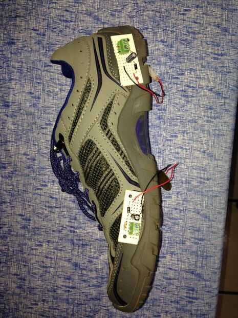 En el prototipo se colocaron dos circuitos con bateria en la parte frontal y trasera del calzado, y se conectaron en un arreglo en paralelo los sensores piezoelectricos, para generar la corriente suficiente necesita la bateria para ser cargada, de forma al caminar o correr, los sensores son presionado, y generan una diferencia de potencial, al pasar por la resistencia se crea una corriente alimenta la batería. Los sensores son cubiertos con una capa de silicona para que no se rompan o desgaste con las pisadas.