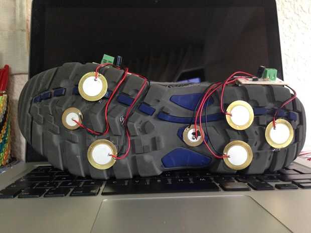 En el prototipo dos circuitos con la batería en la parte delantera y la parte posterior del zapato fueron colocados y conectados en paralelo arreglo de sensores piezoeléctricos para generar bastante corriente que la batería necesita ser cargada, para que al caminar o el funcionamiento de los sensores se presionan y generan una diferencia de potencial, al pasar una corriente a través del resistor alimenta la batería. Los sensores están cubiertos con una capa de silicona para evitar la rotura o desgaste con huellas.