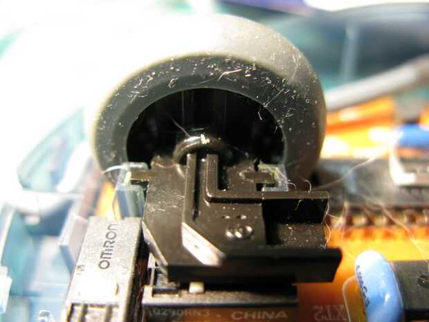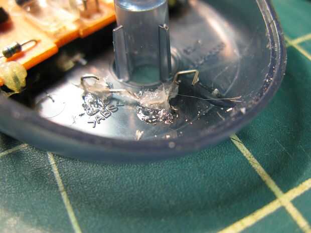 Ratón en la UBS de Logitech, la vida era buena. Era un simple resorte de fácil alcance que raspa el interior de la rueda del ratón.