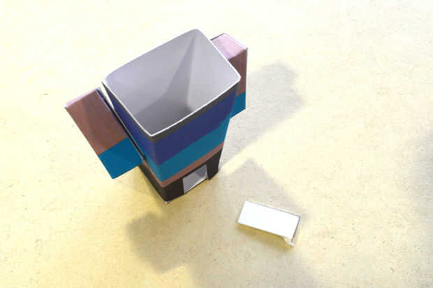 Si estás haciendo tu propia vibración construir esto en la cabeza de Steve. Si estás usando un palo de Fizzbit una espuma pegajosa almohadilla justo dentro del orificio en la parte posterior de la cabeza de Steve. Empuje el extremo puntiagudo de la Fizzbit a través del agujero y empuje hacia abajo el motor para pegarlo a la almohadilla.