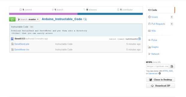 Haga clic en ese botón, y usted debería ver que han comenzado a descargar una carpeta titulada "Arduino_Instructable_Code-master.zip". Extraer el contenido de la carpeta en un directorio que se puede acceder fácilmente.