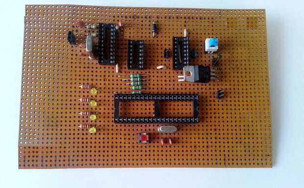 1. Comience soldando el microcontrolador ATmega16 y coloque cuidadosamente los componentes en el PCB de propósito General según los esquemas.