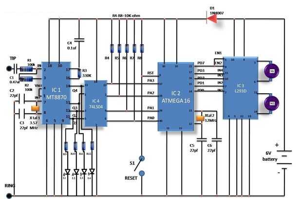 Además de los esquemas, diseñé la fuente de alimentación de 5v regulada para el controlador usando IC de regulador de voltaje 7805. Como voltaje de la batería está en la gama de microcontroladores, no es necesario para el control de voltaje. En caso de utilizar baterías de 6v, utilice el regulador de voltaje 7805.