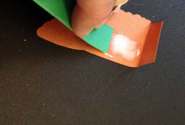 Para pegar las piezas, usted querrá usar finas capas de pegamento adhesivo para evitar las arrugas del papel. Si usas papel más delgado o si te sientes seguro de la colocación, te recomiendo cambiar a un pegamento de secado lento como Nori para no dañar el papel. Adhesivo pegamento llega a ser pegajoso (vuelve pegajosa!) cuanto más tiempo está en el aire, por lo tanto si quiere tiempo para volver a colocar, debes trabajar rápido. Para la aplicación, recomiendo usar desechos de corte bolsa tarjeta en tiras para raspar el pegamento en una capa uniforme y delgada.