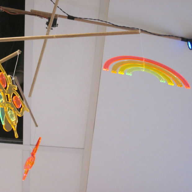 Si va a instalar el móvil en el techo, como lo hicimos, soporte sobre una mesa u otro objeto alto y moverse a un lado un azulejo en el techo. El circuito descansará sobre un azulejo de vecino. Atar el móvil en el techo y colocar el circuito interior del techo. Prueba el móvil y la interacción para asegurarse de que ningunos alambres fueron desplazados en el colgante del teléfono móvil de juguete. Luego deslice el azulejo del techo en su lugar.