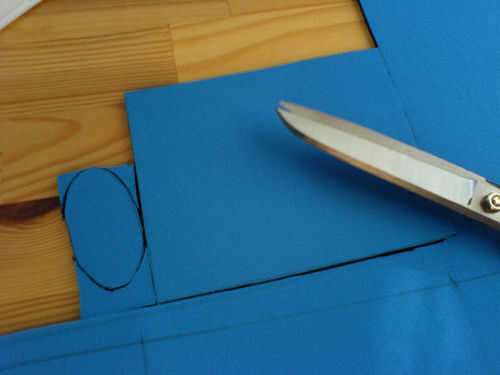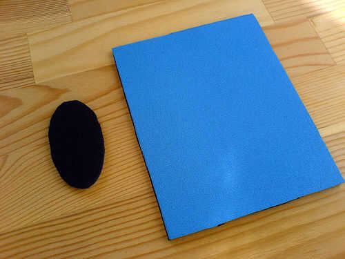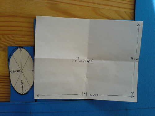Cortar la plantilla siguiente (como se ve en la imagen) de un trozo de papel. El cuerpo es un rectángulo de 14x11cm y la parte inferior es un óvalo de los 3x6cm. Trace la plantilla para el neopreno y cortadas el neopreno.