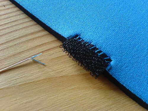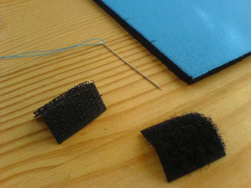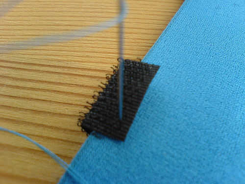 Doblar los cuadrados de Velcro y coserlas en como se ve en las fotos.