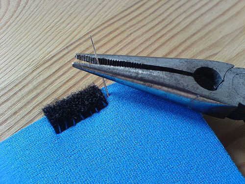 Si la costura se pone dura puede usar un par de pinzas a la aguja a través de full.