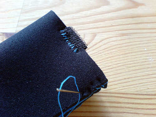 No se olvide de puntada doble la primera puntada y tire firmemente después de cada puntada hacia abajo del lado.