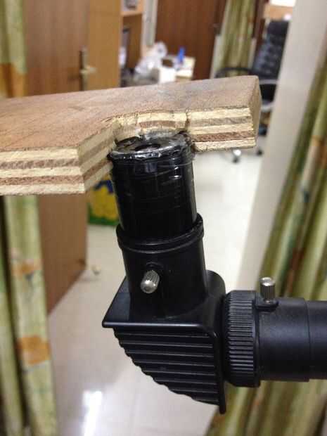 1 º me perforó un agujero del tamaño de la pieza de ojo en el tablón de madera y luego pegan el ocular allí usando pegamento caliente, entonces sólo tengo mi teléfono hasta que tiene la mejor vista con sólo el ojo a la pieza y luego marcados los bordes del teléfono y luego hizo algunas paredes alrededor de todo... y funciona bastante bien!