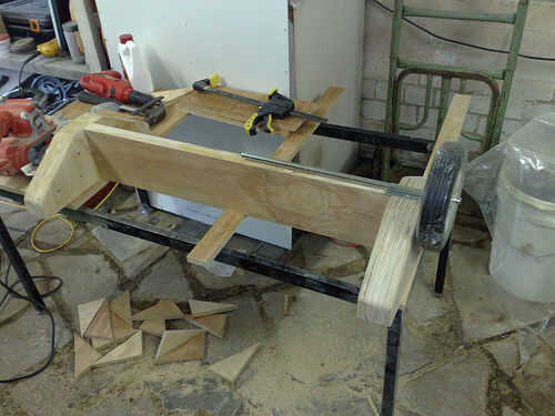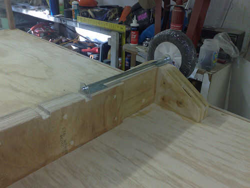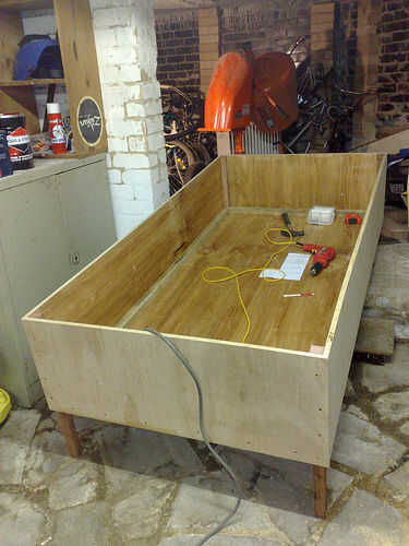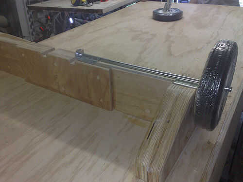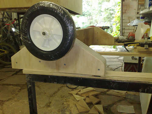 Las ruedas fueron unidas por pegar el marco y atornillar abajo en él a través de la base de la caja.