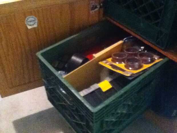 A continuación algunos modificados cajas de leche para recipientes de almacenamiento. Se dividen con finas láminas de MDF corte fit y conectados por agujeros a lo largo de los laterales y cremallera en lugar.