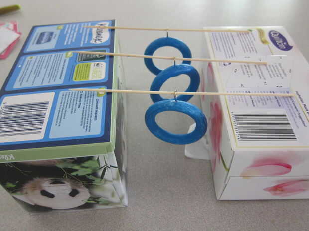 Usted puede descubrir una vez que haya terminado de pintar todos los anillos de cortina de tres, que dejándolas secar serán un reto, como no puede ponerlo solo o la pintura se desprenderá. Aquí está la solución: cada anillo de cortina en un pincho de madera independiente de la secuencia y como se muestra en la foto de arriba, descansar los pinchos en dos cajas de la misma altura para secar durante media hora, (aunque dependiendo de cuántas capas de pintura tiene, podría tomar más o menos tiempo).