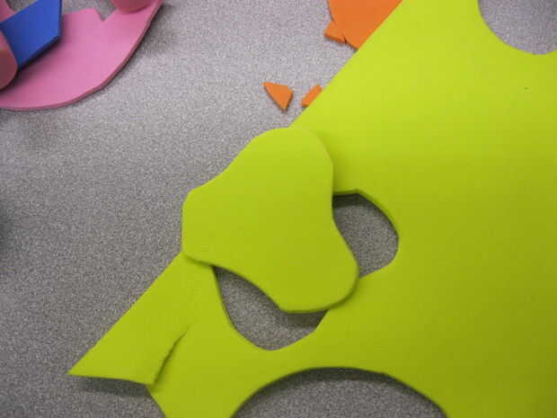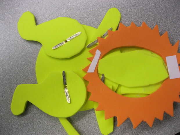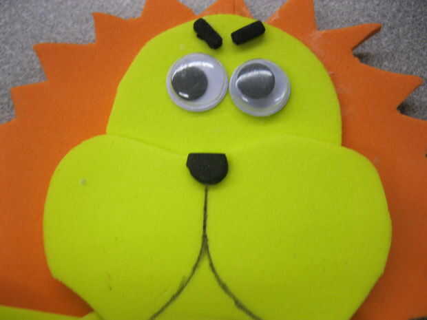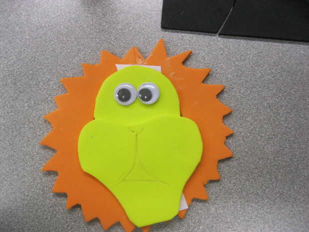 este divertido fácil arte es barato y divertido para hacer.Todo lo que necesitas es papel de espuma, dos tonos diferentes de verde, A marrón más oscuro y un melocotón o tan color.Ojos saltones son opcionales.Sujetadores de papel si lo quieres móvil.P
