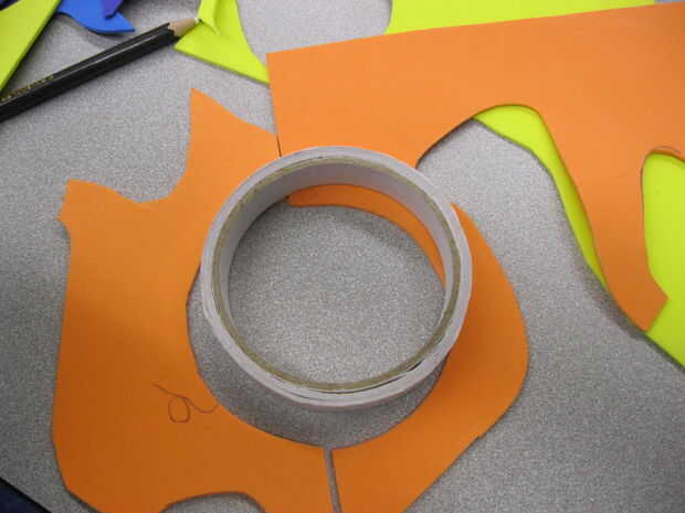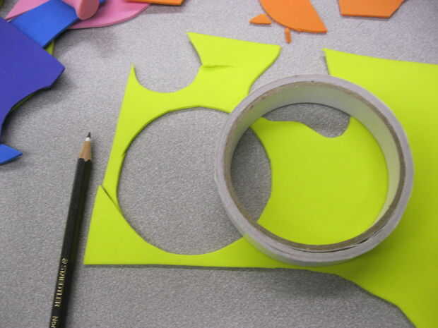 seis diferentes colores en papel de espuma (la clase que tiene la espalda pegajosa, (pegamento si no ha comprado el uno con el pegajoso posterior cinta de enmascarar (o algo circular) sólo para trazar el círculo.Paso 1: Hacer la Base 1 cortar un círc