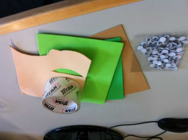 Todo lo que necesitas es papel de espuma, dos tonos diferentes de verde, A marrón más oscuro y un melocotón o tan color.