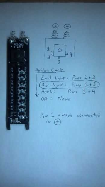 Ahora pulsa el interruptor de la luz una vez para encender la luz en su primera función. Con la punta de prueba roja, prueba los otros pines de interruptor. Uno de ellos mostrará un voltaje positivo, además al pin conectado a las baterías. Escriba el pin de la batería, el pin que está mostrando la tensión, y que la función de la luz está en.