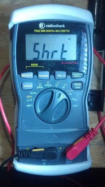 Algunos multímetros tienen una función que hace que un tono audible cuando las sondas toquen ambos puntos que son conectados eléctricamente entre sí. Esta es la manera ideal para probar el interruptor. Coloque el selector del medidor al símbolo que tiene las líneas curvas múltiples retratando una onda de sonido (cuadro 2). Con el swicth de la luz en la posición de apagado, punta de prueba 2 de pines del interruptor a la vez, pasando por todas las combinaciones (1 y 2, 1 y 3, 1 y 4, 2 y 3, 2 y 4 y 3 y 4). No importa qué color sonda va a que pin. No tono debe ser producida en esta posición de interruptor. Presione el interruptor de la luz a la primera función y probe los pasadores de la misma manera hasta el metro produce un tono. Unos metros también pueden mostrar un mensaje como "Corto", como en la foto 2. Escribir la función y el par de pines que produjo el resultado. Pulsa el interruptor de la luz a la siguiente función y hacer lo mismo. Repita hasta que todas las funciones se identifican.