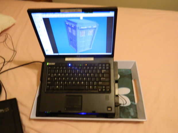 o cómo transformé una bandeja en un soporte portátil.No tenemos TV, pero nos gusta poner en una manta y ver un DVD en el portátil.Este soporte del ordenador portátil asegurará buen flujo de aire y estabilidad.Paso 1: Un ordenador portátil, una frazad