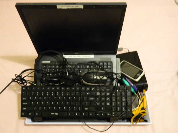 Todos los dispositivos de interface humano: teclado, ratón, auriculares se apilan para arriba. Normalmente no uso los auriculares. Están allí para Skype.