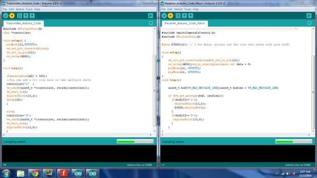 Obviamente Arduinos necesitas códigos para trabajar! :)) Son computadoras después de todo. Aquí están los códigos para el receptor remoto y el faro. Código del receptor remoto escrito en esta página es para los usuarios de Nikon sólo. Por favor, descargue el paquete de código a continuación si utiliza una marca diferente. Aquí son compatibles / compatible con las marcas Canon, Minolta, Nikon, Olympus, Pentax, Sony. En cuanto a código de la baliza, la compatibilidad no es un problema.