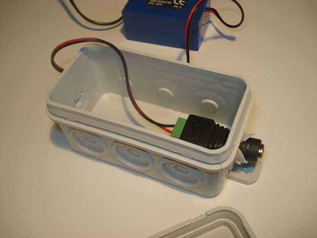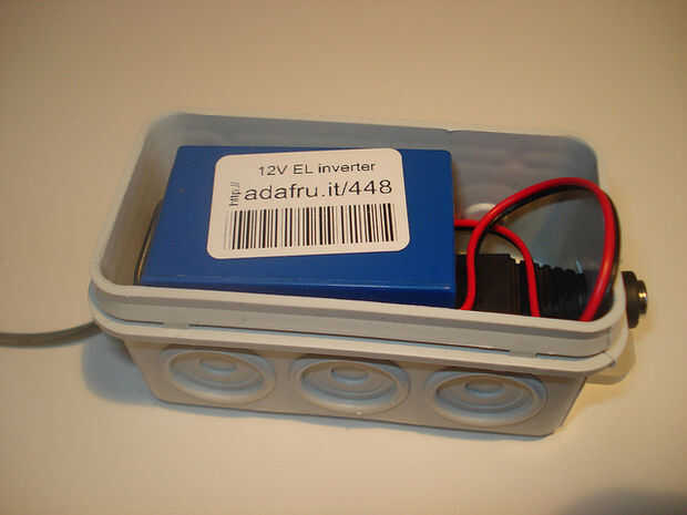 Poner el inversor en la caja reduce el ruido y conserva el tornillo terminal seco (por si acaso).