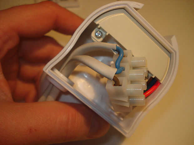Conecte la clavija grande (que va en la salida) a L (cable marrón) y N (cable azul).