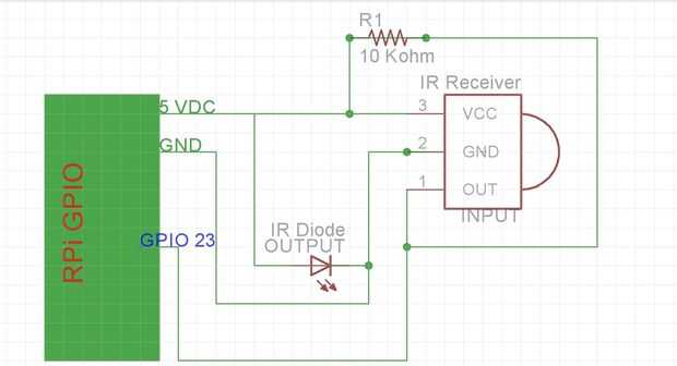 4. Conecte el lado positivo del receptor IR al pin de 5V de RPi.