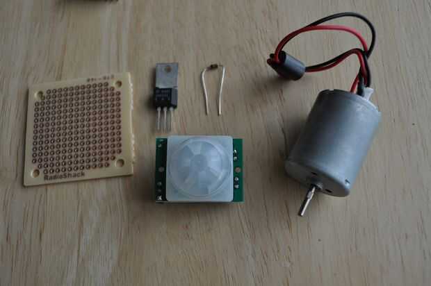 Usé un sitio llamado www.taydaelectronics.com y Radioshack. RadioShack porque tenía las piezas y Tayda porque te permite orden en cantidades de 1 y el envío es baja. Las sustituciones son muy posibles. Cualquier transistor con suficiente capacidad corriente continua para el motor debe trabajar, en este caso 800ma. Animo a gorronear un motor si tienes ganas de desarmar cosas, son en todo. Si usted tiene prisa para hacerlo antes de Halloween todas esta cosas pueden comprarse en una tienda de radio shack.