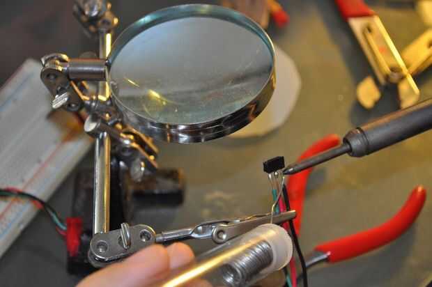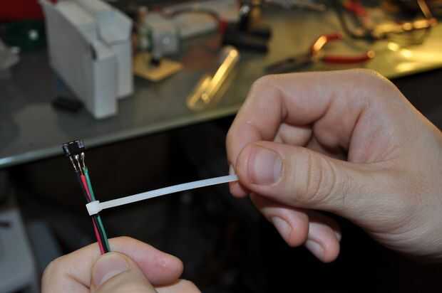 Para hacer el cable conector para el PIR utilice la pieza de un encaje u otro 3 pin hembra encabezado y soldadura hasta el final de los tres alambres. Puede soldar los cables directamente en el PIR pero no quería arreglar esto permanentemente, y eso haría más difícil de trabajar con el para la instalación.
