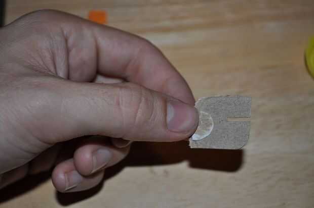 Tome un pedazo de cartón de desecho y corte una ranura pequeña con su cuchillo de la manía, sólo lo suficientemente ancho como para montar sobre el eje del motor y lo suficientemente profundo que el separador cubre el motor. Coloque al espaciador en el eje del motor. Esto le permitirá presionar las partes del carrete de nivel sin interferencia contra el motor.