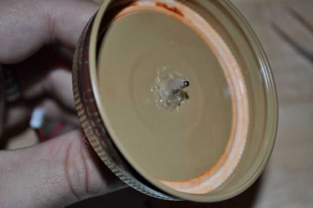 Pegamento en los bordes de la tapa de la leche contra la tapa del tarro. Usted puede sacar un poco más de bamboleo si usted tiene cualquier aquí por manteniéndola recta cuando pegue esto.