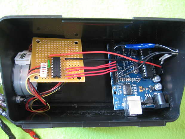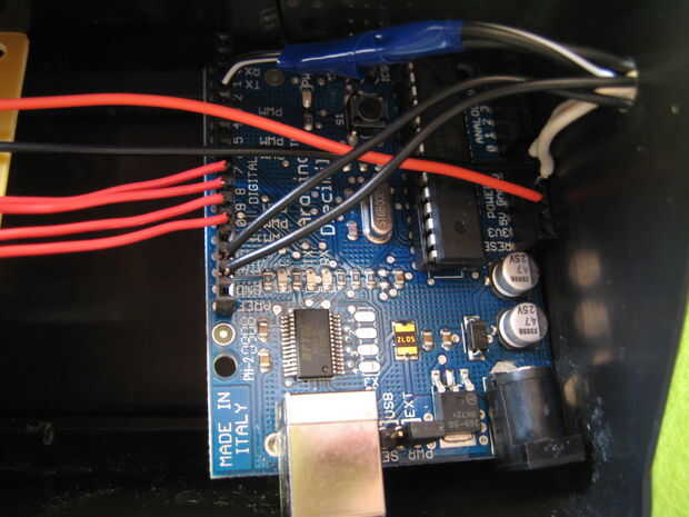 La meta para poder colocar la luz donde es necesario, debo necesito para cambiar el código o ir alrededor de algún objeto. Corría los cables por el mismo agujero en la caja como todos los otros y enchufado en el mismo pin que he tenido ella tapó en el. Lo he comprobado y cuando está enchufado, y todavía funcionó a la perfección. Con todo conectado, era hora de probar mi creación.