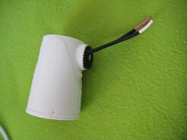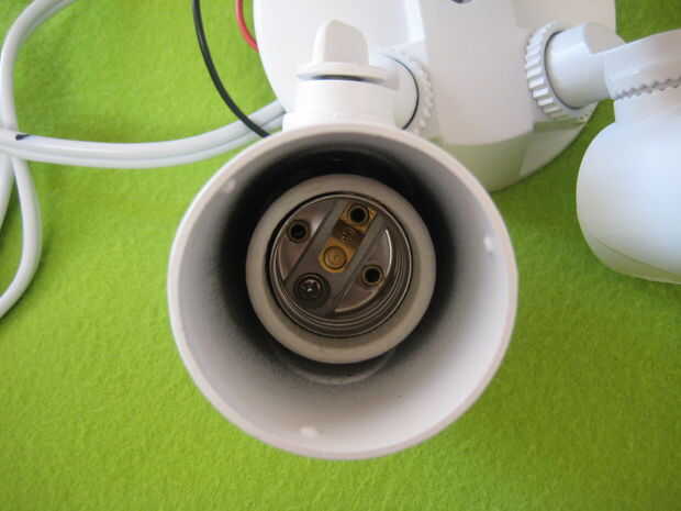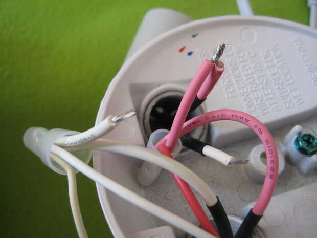 Una vez que terminó, me di cuenta que al conectar mi enchufe de luz, los enchufes no hacen más allá de la carcasa de la luz. Fui capaz de conectar cualquier cosa. La luz toma es sostenida en lugar por dos tornillos detrás de donde la luz se enrosca, que sacó, yo luego Desenroscar el regulador de luz de fondo que ayudan a la Asamblea en el lugar. Hay dos cables que conectar la toma con todo lo demás, eran rojo y blanco y la forma más fácil que encontré para conseguir la toma, fue para ésos en un punto que fácilmente sería capaz de volver a unir más tarde.
